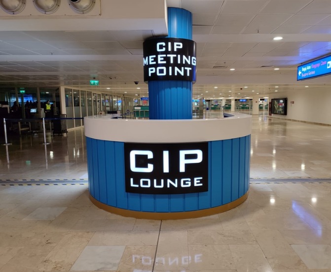| Встреча в месте встречи CIP - FAST TRACK (сип кабинка) у входа главного терминала. | Вход в терминал через специальные ворота CIP - FAST TRACK |