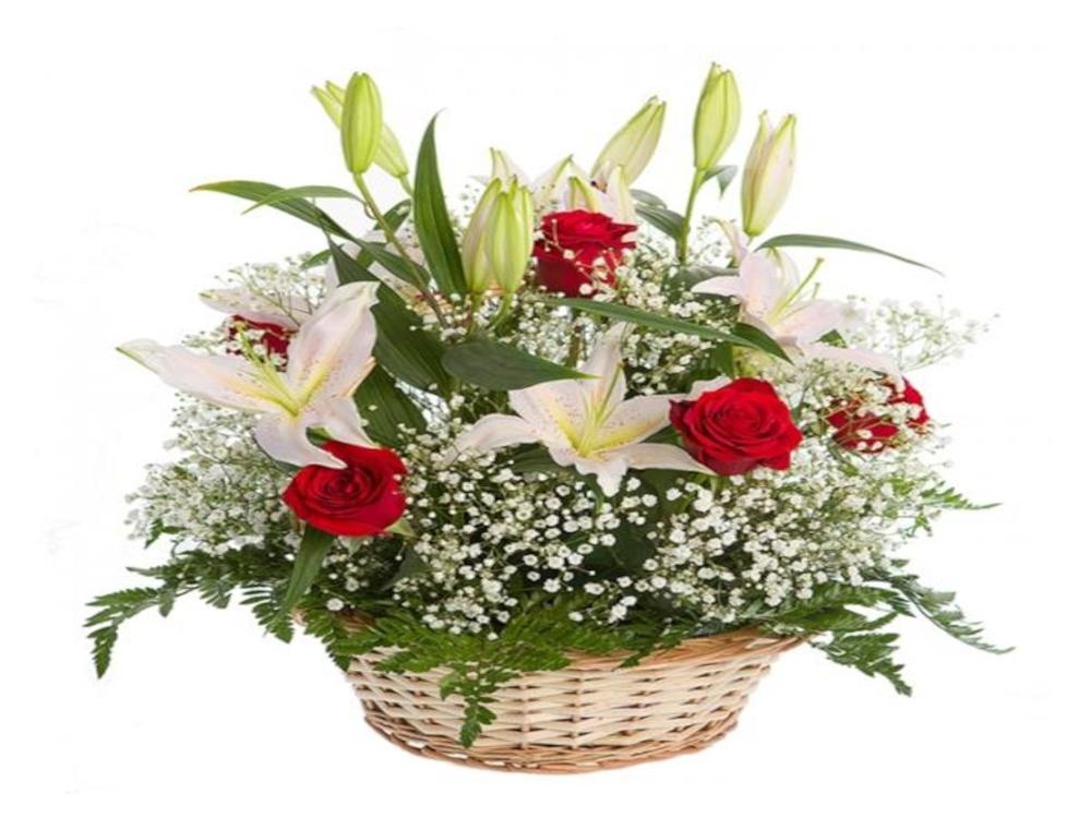 2 Белые лилии и 7 роз в аранжировке Цены от 75,00 €.