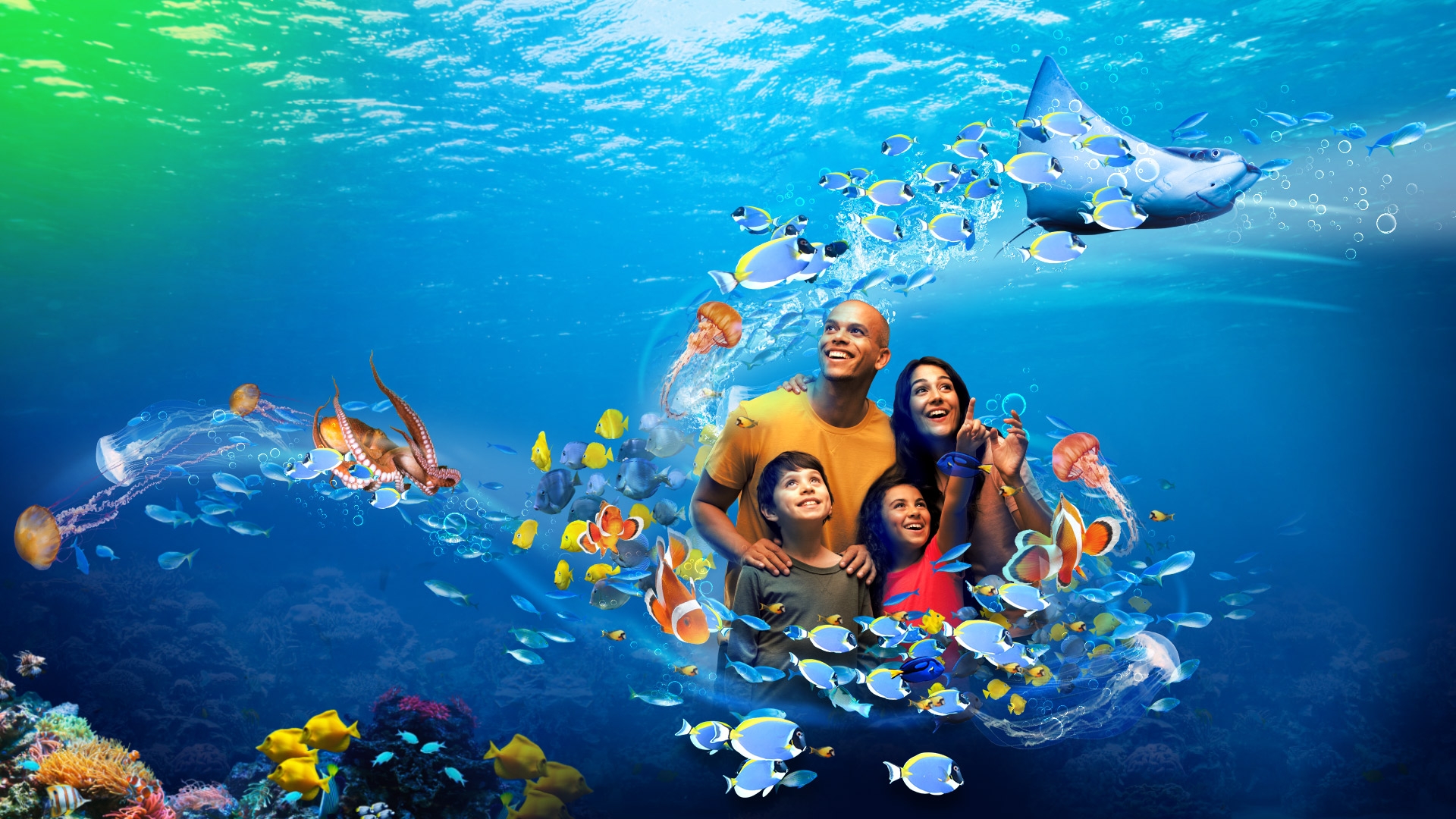 Аквариум разделен на 16 географических зон, каждая из которых представляет уникальную экосистему различных регионов мира. Здесь обитает более 1500 видов и 15000 морских и земных существ, создавая захватывающий морской оазис. Особое внимание привлекает огромный аквариум с акулами, скатами, тунцами и другими крупными морскими обитателями, куда можно совершить погружение в сопровождении опытного инструктора.