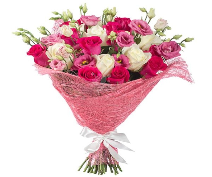 Белые и розовые розы с лизиантусом