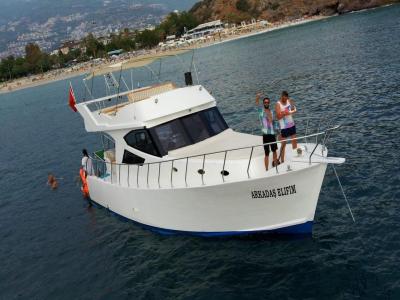Яхта отправляется из порта Алании и идеально подходит для частных групп. Наслаждайтесь незабываемым морским туром с друзьями или семьёй.